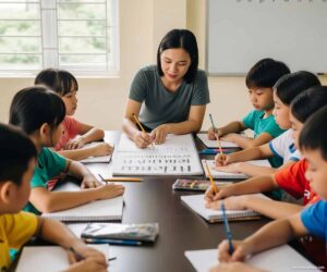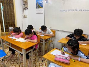 Học sinh lớp 3-4 (8-9 tuổi) đã có khả năng tập trung tốt hơn, có thể luyện tập liên tục 25-30 phút. Giai đoạn này tập trung vào việc chuẩn hóa kích thước chữ và khoảng cách. Chúng tôi sử dụng vở có ô vuông 5x5mm để giúp trẻ kiểm soát tỷ lệ chữ viết.