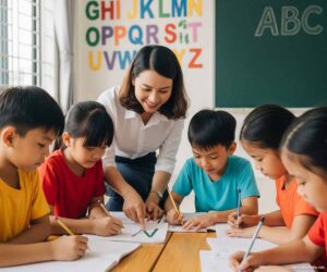 Học sinh lớp 1-2 (6-7 tuổi) cần phương pháp giảng dạy qua trò chơi và hình ảnh sinh động. Tại Như Ý, chúng tôi sử dụng phương pháp “chữ cái động vật” – mỗi chữ cái được gắn với một con vật có hình dạng tương tự. Chữ “s” giống con rắn, chữ “o” như quả trứng tròn.